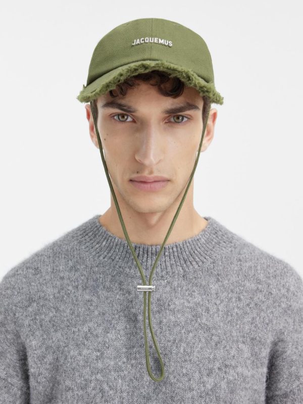 – Topstitched brim with fringed edges