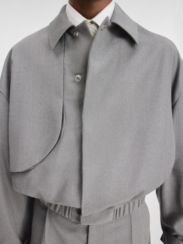 – Hidden snap button placket with one visible button
