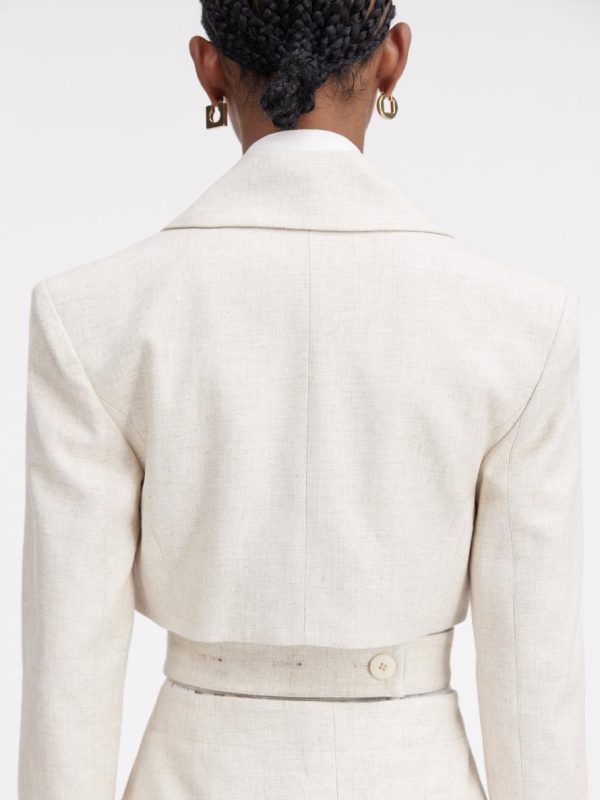 – Cut-out waist with attached buttoned belt