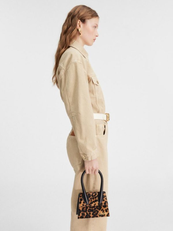 – Structured leopard print leather bag